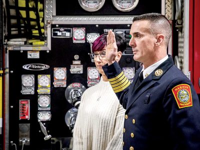 - Steve Buxton takes the oath of office as the new chief of Nashua Fire Rescue on Wednesday. (Photo by JEFFREY HASTINGS)