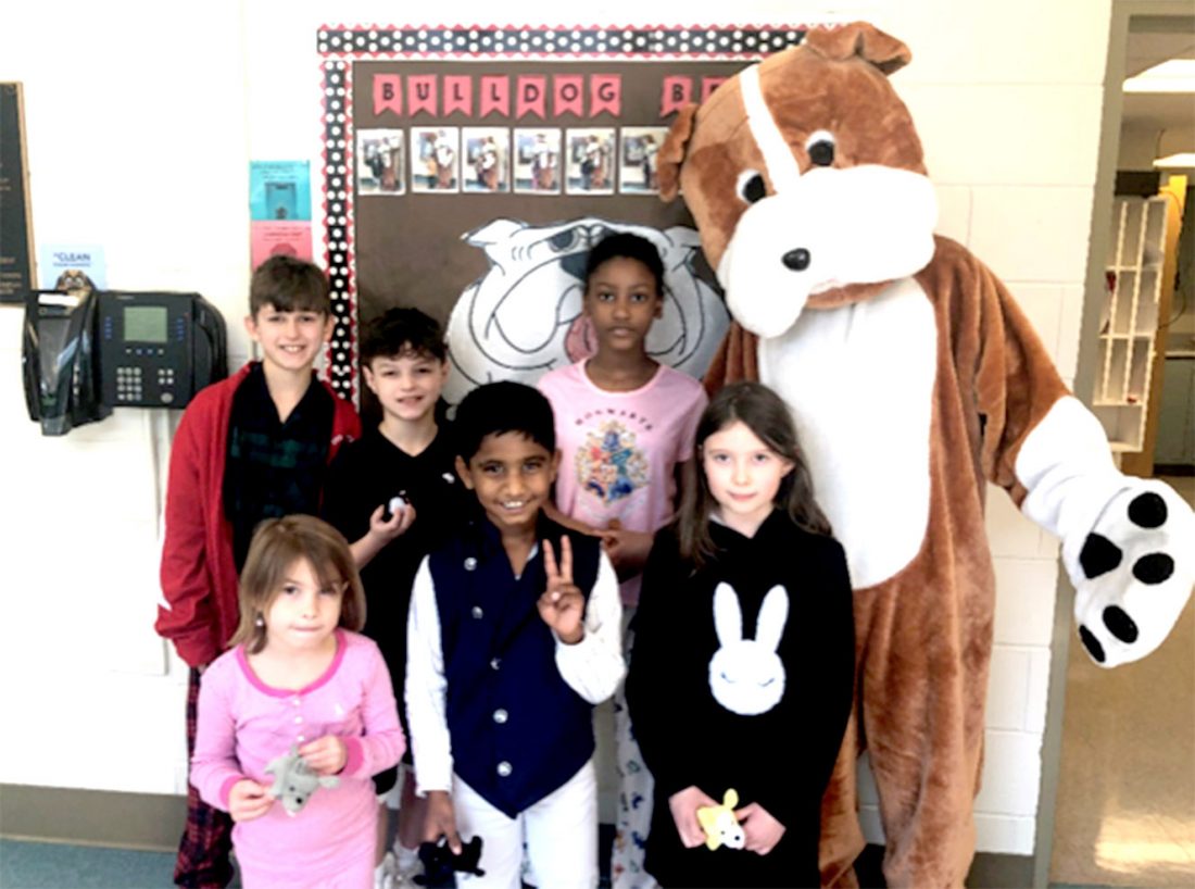 On average, students and staff submit 150-200 Bulldog Brags each week. I pull six tickets each week and winning students come to the main lobby, where we present them with a small stuffed bulldog and photograph them with Buddy, the school mascot. Photos are shared via social media and posted on a bulletin board in the main lobby. Entire classrooms also receive Bulldog Brags and participate in a different raffle. A class may receive a Bulldog Brag from a staff member for meeting hallway expectations, being extraordinary for a guest teacher, or maybe having a day or week when every student turns in homework. Classrooms that win the raffle have a stuffed dog placed in their classroom for the week. This is very special and fun for the younger students and gives the older students a sense of pride to be recognized collectively as a whole class.