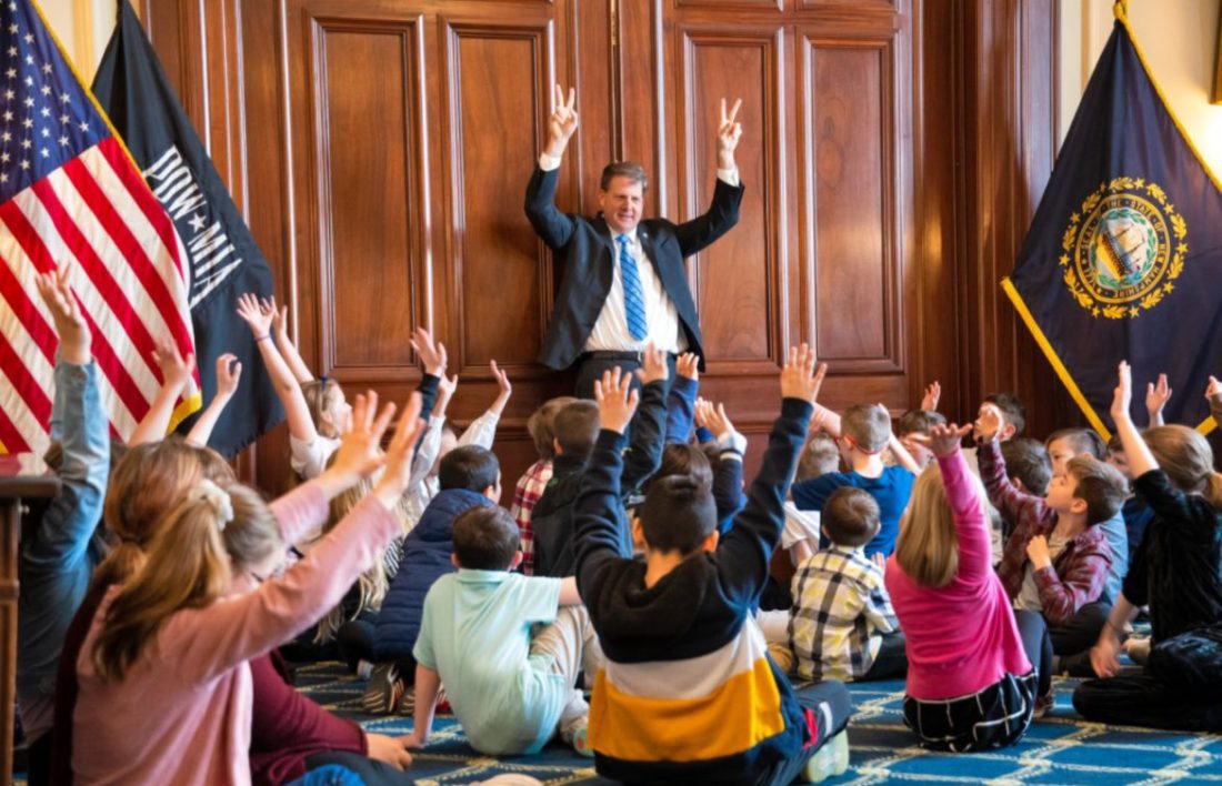 Gov. Chris Sununu is pictured meeting with students at the State House. Photo posted on Twitter Tuesday.