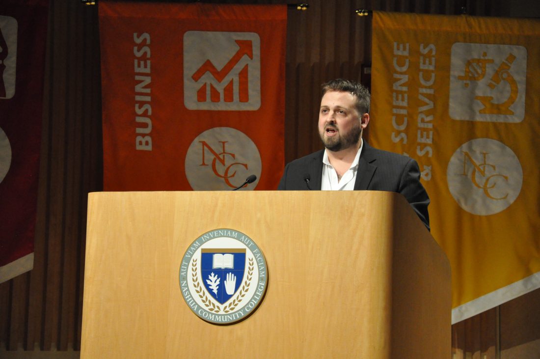 Guest speaker Jennifer Boucher, an NCC Class of 2012 nursing graduate and clinical instructor, said working with this class inspired her to become a nurse educator. “I enjoyed every minute of being your clinical instructor,” said Boucher, and reminded graduates that their peers and faculty will always be their nursing family. “Every one of you will be an amazing nurse.”