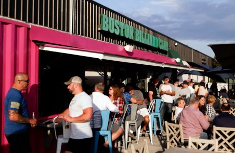 - (Courtesy photo) A wide-angle view of Boston Billiard Club & Casino’s outdoor dining area is now centerpieced by its new “Container Bar,” which has had a soft opening and will be the subject of a grand opening throught the holiday weekend.