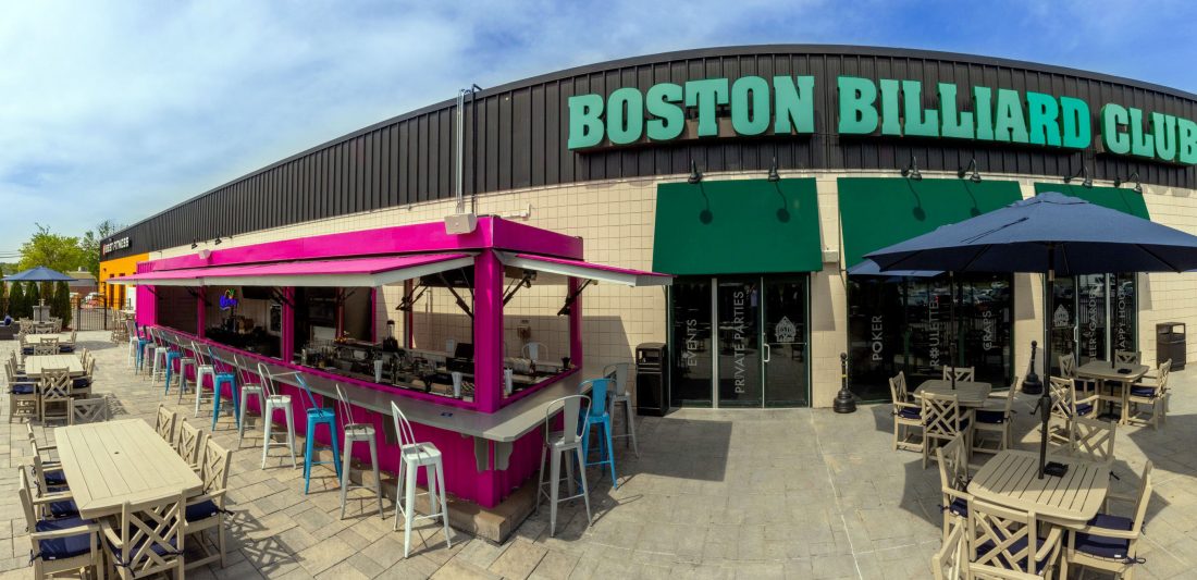 (Courtesy photo) A wide-angle view of Boston Billiard Club & Casino's outdoor dining area is now centerpieced by its new "Container Bar," which has had a soft opening and will be the subject of a grand opening throught the holiday weekend.