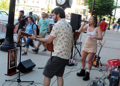 The popular regional duo “Hunter!” featuring vocalist Hunter Stamas and guitarist Cameron Gilhooly, entertained passersby in front of Gentle Dental, many of whom stopped to listen to a song or two.