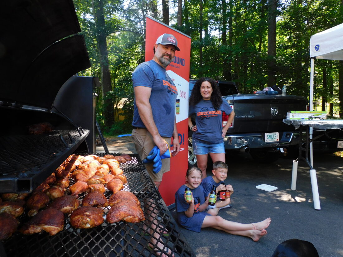 The family bulldog, “Chunk,” flapped his jowls as steaks on the grill promised some savory chomps from his doggie dad, Mike McDade, the Hollis proprietor of Saucehound BBQ – a source for sauces and rubs that have vied for honors at a world championship and won awards at major barbecue competitions.