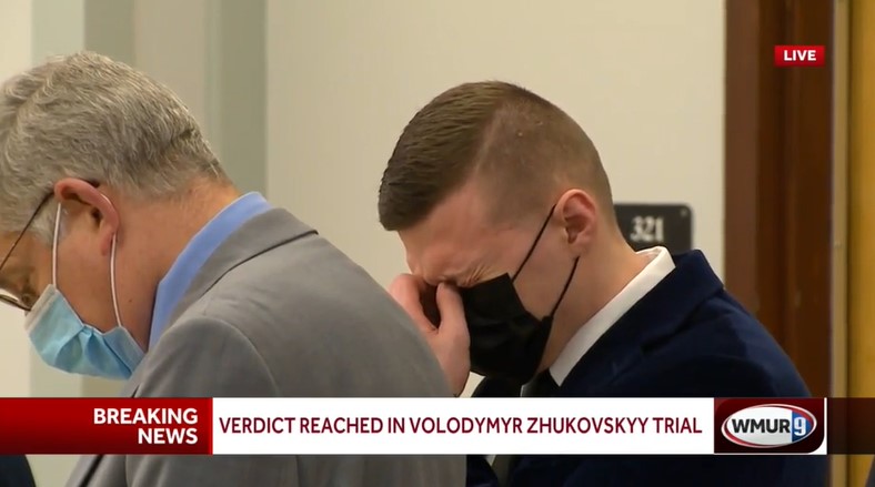 Volodomyr Zhukovskyy is pictured in Coos County Superior Court in Lancaster as all of the not guilty verdicts were read Tuesday in this WMUR screenshot.