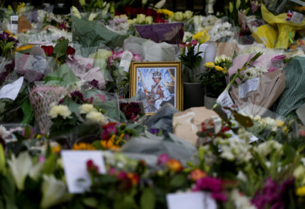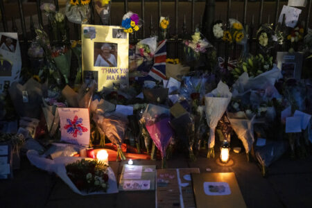LONDON (AP) — By early afternoon, the scent of thousands of lilies and roses floated in the air outside Buckingham Palace. But the pilgrims kept arriving, bearing still more bouquets and notes of endearment addressed to the only queen most have ever known.