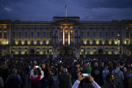 - People gather outside Buckingham Palace in London, Friday, Sept. 9, 2022. Queen Elizabeth II, Britain’s longest-reigning monarch and a rock of stability across much of a turbulent century, died Thursday Sept. 8, 2022, after 70 years on the throne. She was 96. (AP Photo/Felipe Dana)