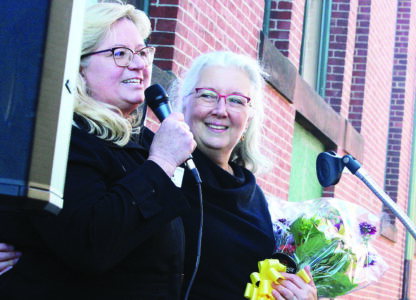 Board member Janet Polaneczky called MacDonald to the stage and presented her with floral arrangements to a round of applause.