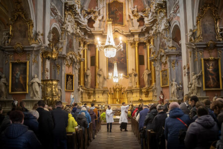- A priest blesses the congregations during an Easter service, at the Church of St Theresa in Vilnius, Lithuania, Saturday, April 8, 2023. (AP Photo/Mindaugas Kulbis)