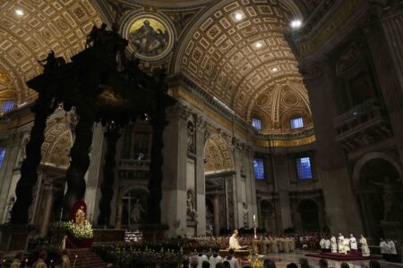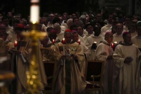 - Cardinals hold candles as Pope Francis presides over an Easter vigil ceremony in St. Peter’s Basilica at the Vatican, Saturday, April 8, 2023. (AP Photo/Gregorio Borgia)