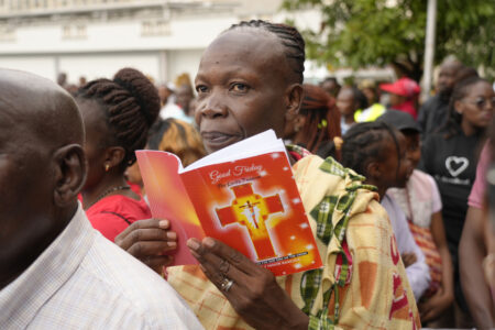 - Christian faithfuls pray near the Holy Family Basilica in Nairobi, Kenya, Friday, April, 7, 2023 on Good Friday during the Holy Week of Easter. Easter marks the end of Lent, a forty-day period of fasting, prayer, and penance. The last week of the Lent is called Holy Week, and it contains Good Friday, commemorating the crucifixion and death of Jesus. (AP Photo/Sayyid Abdul Azim).