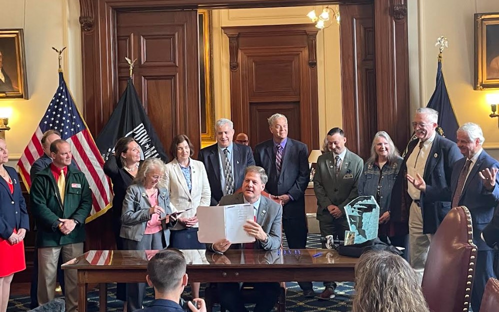 The prime sponsor of the bill was state Rep. John Potucek, R-Derry who gave a thumbs up after the governor signed the bill and handed him one of the pens used to sign the bill into law.