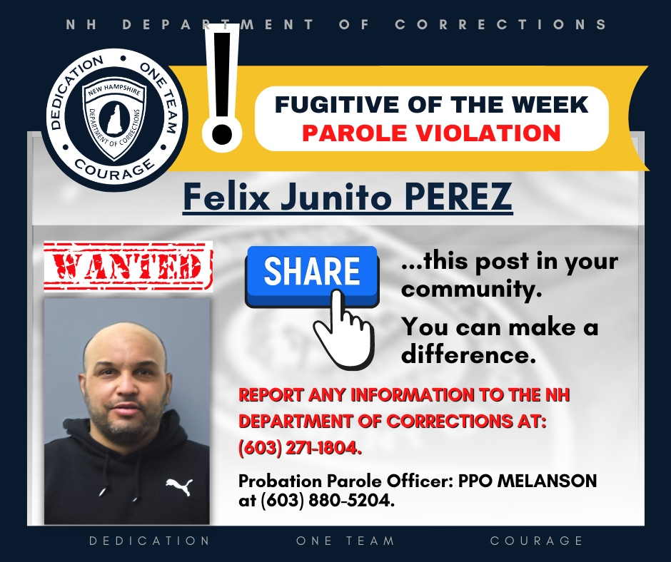 Anyone with information about Perez’s whereabouts is asked to contact the New Hampshire Department of Corrections at 603-271-1804.