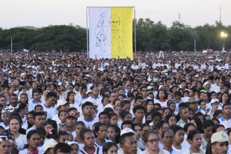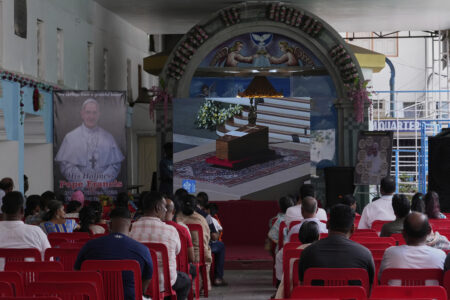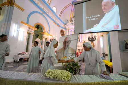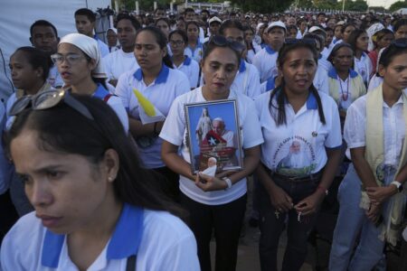 - Devotees attend a Requiem Mass for the late Pope Francis in Dili, East Timor, Saturday, April 26, 2025. (AP Photo/Firdia Lisnawati)