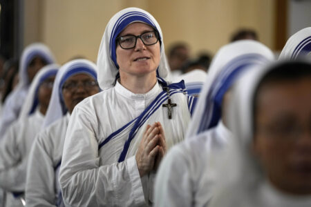 - Catholic nuns of the Missionaries of Charity, the order founded by Saint Teresa, attend a service for the late Pope Francis at the Cathedral of The Most Holy Rosary, in Kolkata, India, Saturday, April 26, 2025. (AP Photo/Bikas Das)