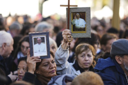 - Mourners pay tribute to the late Pope Francis during a Mass outside the Cathedral in Buenos Aires, Argentina, Saturday, April 26, 2025. (AP Photo/Natacha Pisarenko)