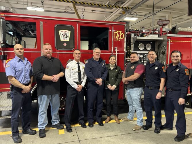 NASHUA – U.S. Congresswoman Maggie Goodlander (D-NH) recently met with members of Nashua Fire Rescue to promote the Honoring Our Fallen Heroes Act which she is cosponsoring.