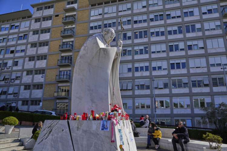 ROME (AP) — Pope Francis stabilized enough Tuesday after two respiratory crises to resume using a nasal tube for oxygen, rather than a ventilation mask, as he continued to fight pneumonia, the Vatican said.