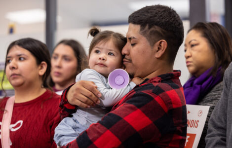CHICAGO (AP) — A suburban Chicago father and his 1-year-old daughter were pepper-sprayed at close range as they headed grocery shopping over the weekend and happened upon federal immigration agents, the family said.