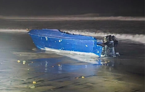 A wooden skiff believed to have been ferrying migrants toward the U.S. capsized in stormy seas near San Diego, leaving at least four people dead and four hospitalized, the Coast Guard said Saturday.