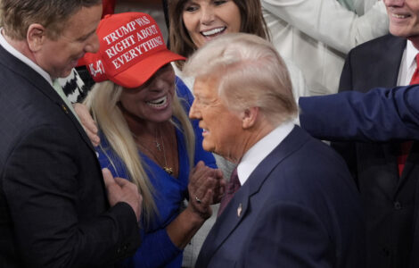 WEST PALM BEACH, Fla. (AP) — When President Donald Trump addressed Congress earlier this year, Rep. Marjorie Taylor Greene was there holding an American flag and wearing a red baseball cap that said "Trump was right about everything."