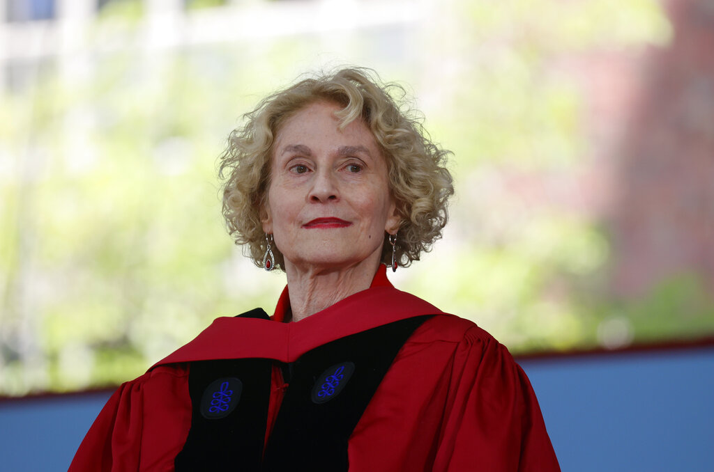FILE - Martha Nussbaum is introduced as an honorary degree recipient during Harvard's 371st Commencement, May 26, 2022, in Cambridge, Mass. Three Americans were among winners of this year’s Balzan Prize, announced Monday, Sept. 12, 2022, for their work in the fields of moral philosophy, musicology and biotechnology. Nussbaum, a philosopher and scholar at the University of Chicago, won for “her transformative reconception of the goals of social justice, both globally and locally," the Balzan Foundation said in its citation. (AP Photo/Mary Schwalm, File)