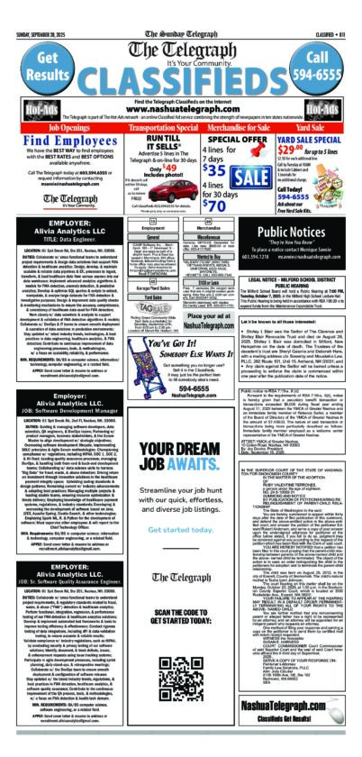 Telegraph Legals A 9/28/2025 By Staff | Sep 29, 2025 T092725-B11 NewsletterToday's breaking news and more in your inboxEmail(Required) I'm interested in (please check all that apply)(Required) Daily Newsletter Breaking News Obituaries Are you a paying subscriber to the newspaper?(Required) Yes No Public Notice Telegraph Legals B 9/28/2025 Telegraph Legals A 9/28/2025 Cabinet Legals 9/25/2025