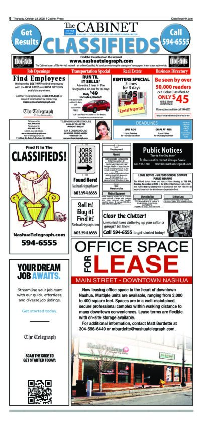 Cabinet Legals 10/23/2025 By Staff | Oct 23, 2025 C102325-A08 NewsletterToday's breaking news and more in your inboxEmail(Required) I'm interested in (please check all that apply)(Required) Daily Newsletter Breaking News Obituaries Are you a paying subscriber to the newspaper?(Required) Yes No Public Notice Telegraph Legals 10/26/2025 Cabinet Legals 10/23/2025 Telegraph Legals 10/19/2025