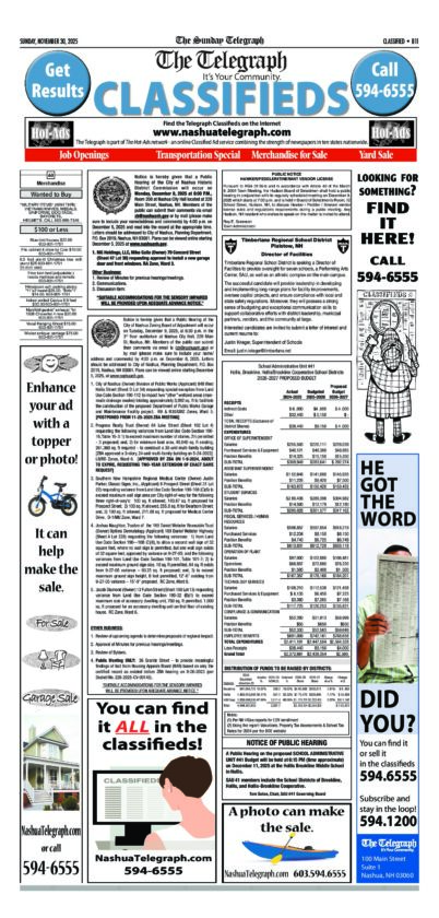 Telegraph Legals 11/30/2025 By Staff | Nov 26, 2025 T113025-B11 NewsletterToday's breaking news and more in your inboxEmail(Required) I'm interested in (please check all that apply)(Required) Daily Newsletter Breaking News Obituaries Are you a paying subscriber to the newspaper?(Required) Yes No Public Notice Telegraph Legals 11/30/2025 Telegraph Legals 11/23/2025 Cabinet Legals 11/20/2025