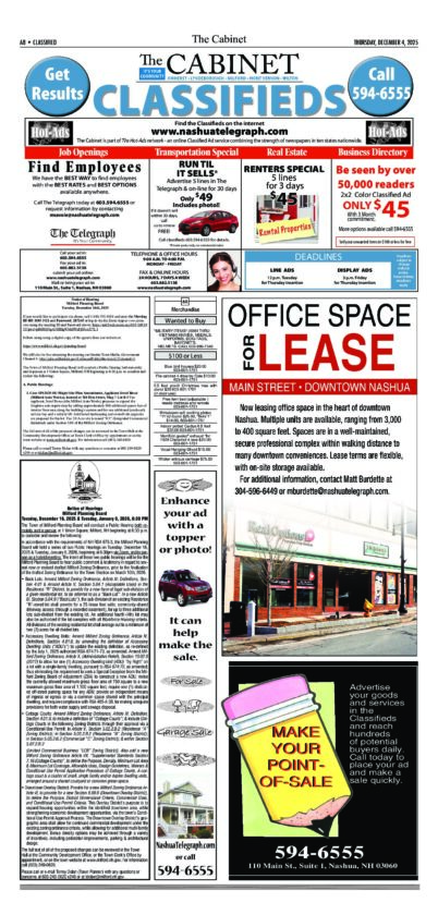 Cabinet Legals 12/4/2025 By Staff | Dec 8, 2025 C120525-A08 Public Notice Telegraph Legals 12/7/2025 Cabinet Legals 12/4/2025 Telegraph Legals 11/30/2025