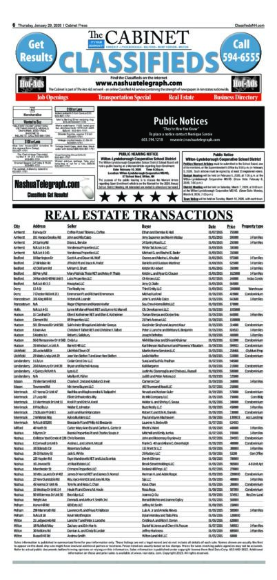 Cabinet Legals 1/29/2026 By Staff | Jan 30, 2026 C012926-A06 NewsletterToday's breaking news and more in your inboxEmail(Required) I'm interested in (please check all that apply)(Required) Daily Newsletter Breaking News Obituaries Are you a paying subscriber to the newspaper?(Required) Yes No Public Notice Telegraph Notice 2/1/2026 Cabinet Legals 1/29/2026 Telegraph Notices 1/25/2026