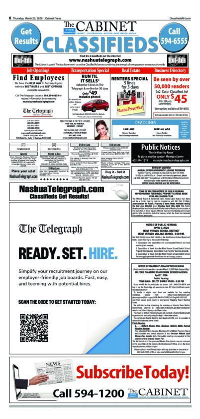 Cabinet Legals & Classifieds 3/26/2026 By Staff | Mar 31, 2026 C032626-A06 NewsletterToday's breaking news and more in your inboxEmail(Required) I'm interested in (please check all that apply)(Required) Daily Newsletter Breaking News Obituaries Are you a paying subscriber to the newspaper?(Required) Yes No Public Notice Cabinet Legals & Classifieds 3/26/2026 Telegraph Legals & Classifieds 3/29/2026 Cabinet Legals & Classifieds 3/19/2026