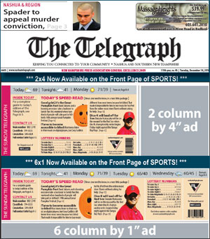 The Telegraph offers a unique opportunity to reach adults in Southern New Hampshire. From front page adhesive notes to front of section advertising and wedding guides to home and garden publications The Telegraph can reach the audience you want.