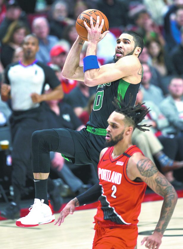 The Blazers jumped out to a 17-12 lead but the Celtics caught up quickly and went ahead on Tatum’s 3-pointer. Boston led 28-24 after the first quarter, led by Marcus Smart with three 3-pointers.