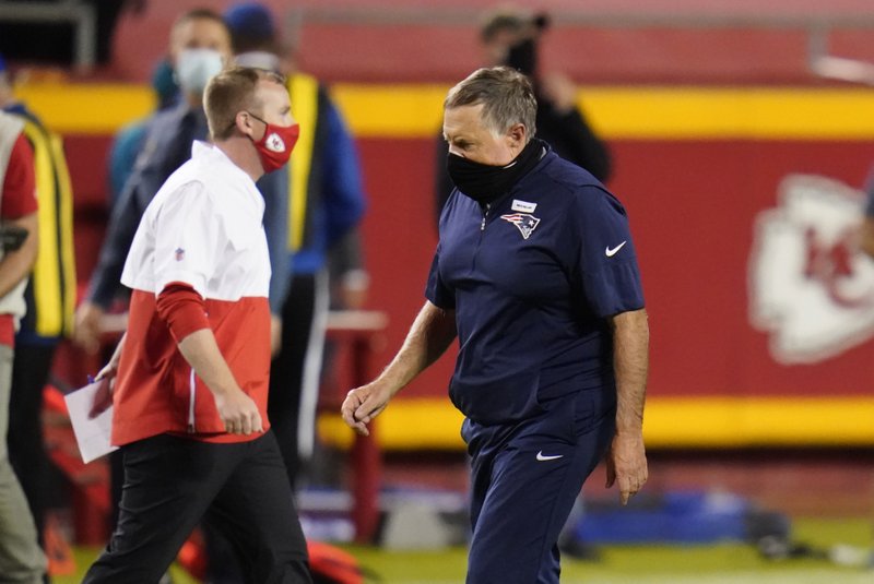 AP photo New England Patriots head coach Bill Belichick walks off the field after an NFL football game against the Kansas City Chiefs Monday. Belichick says the issue of playing Sunday vs. Denver is up to the medical experts.