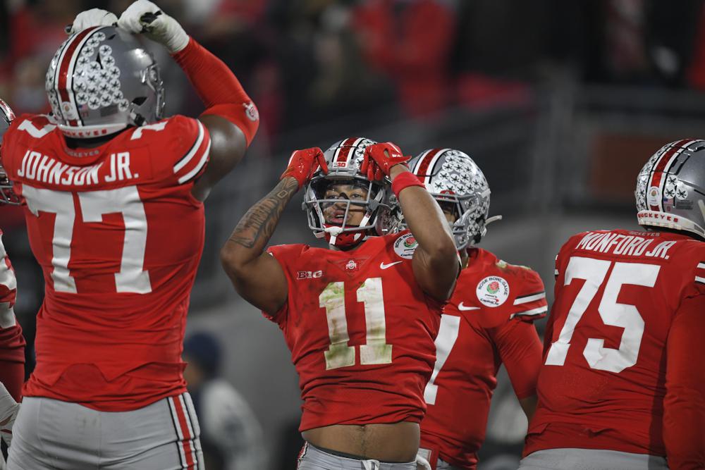 Jaxon Smith-Njigba set the record for any FBS bowl game with 347 yards receiving while catching a school-record 15 passes and scoring three touchdowns. Marvin Harrison Jr. also caught three TD passes for the Buckeyes, who set a Rose Bowl record with 683 total yards.
