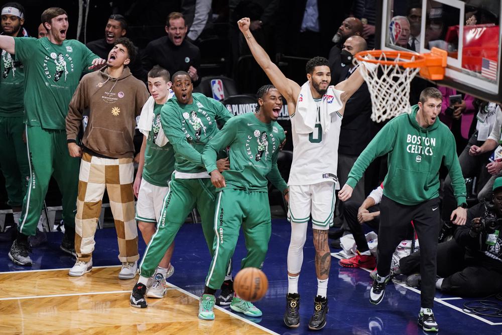 Tatum fouled out with the Celtics leading by six with 2:48 to play. Irving made a 3-pointer and Durant scored to cut it to 109-108 with 1:28 remaining. But after a basket by Brown, Durant could only make one free throw and the Celtics rushed down the floor, with Al Horford putting back Smart’s miss to make it 113-109 with 13 seconds left.