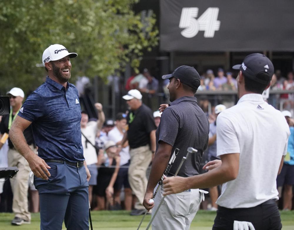 BOLTON, Mass. (AP) — Dustin Johnson gave LIV Golf its first big moment Sunday when he made a 35-foot eagle putt on the first hole of a sudden-death playoff to win the LIV Golf Invitational-Boston for his first victory in 19 months.
