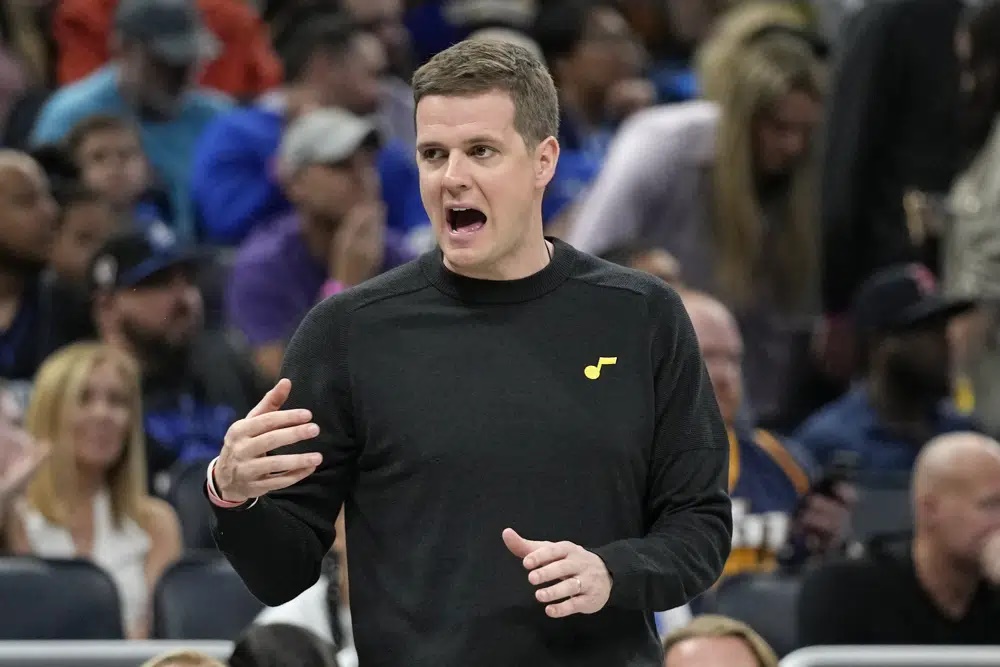 Utah Jazz head coach Will Hardy directs his team during the first half of an NBA basketball game against the Orlando Magic last Thursday. (AP photo)