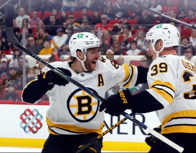Boston (15-5-2-5) moved within one point of first-place Montreal (58), with the ...