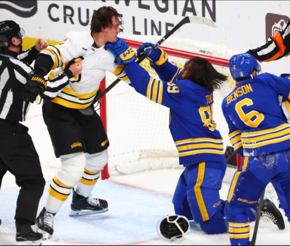 BUFFALO, N.Y. (AP) — Morgan Geekie bounced in a shot from beyond center as part of Boston’s three-goal second-period surge and the Bruins beat the Buffalo Sabres 4-2 to even their first-round playoff series at 1 on Tuesday night.
