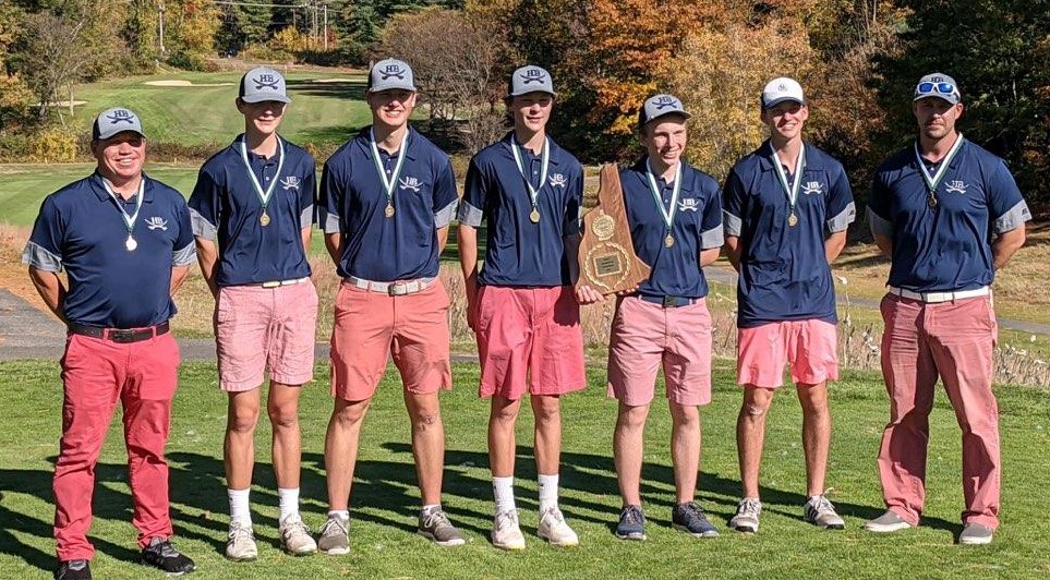 It was a happy group of Hollis Brookline HIgh School golfers after winning the Division II state title a year ago. However, only a couple of experienced players return as the season opens for a few schools this week. (Courtesy photo)