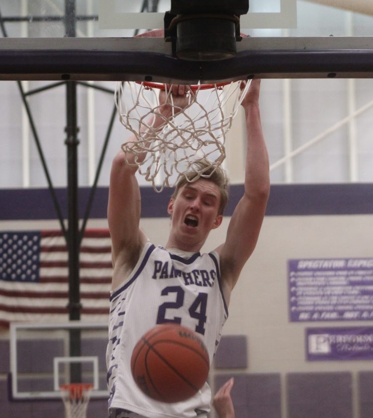 Nashua South's Rhett Medling, shown finishing a dunk earlier in the season, led the Panthers to a win over Spaulding on Wednesday night. (Telegraph photo by TOM KING)
