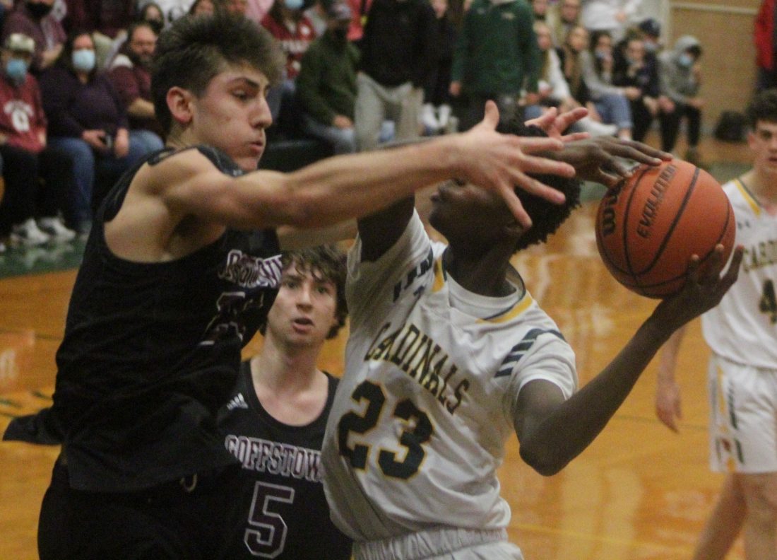 Meawhile, Bishop Guertin will have to travel No. 3 Goffstown (16-3) by virtue of its 44-41 loss in Nashua just last Saturday at the hands of the Grizzlies. The Cards led 30-22 at halftime but a poor shooting second half did them in. That wasn’t the problem the other night in the prelims vs. Manchester Central.