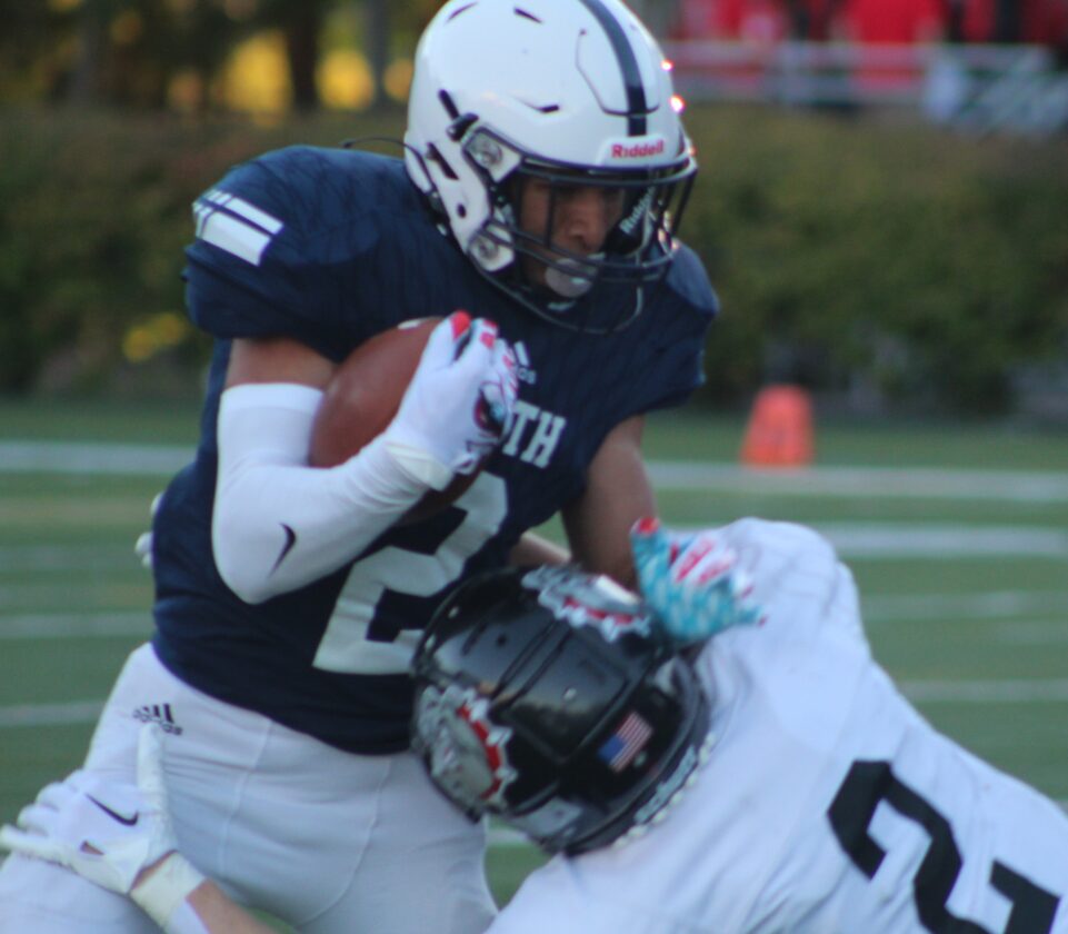 But the Titans were facing a hungry Bedford team that was pushing to score just before the half after a North fumble at midfield. They were at the Titan 8-yard-line when QB Danny Black took a sharp hit from Peters while beginning his throwing motion. The ball popped loose, ruled a fumble, and Brown scooped it up and raced 78 yards as time expired for a game changing TD.