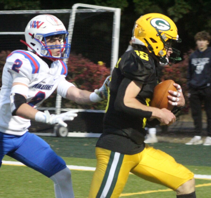 And they performed well, except the second half things slowed down, as penalties killed one drive and Winnacunnet’s Daniel Blankenship grabbed a pass intended for Gavin Bombara in the end zone after the two grappled for the ball. The 0-5 Warriors, who had only scored 12 points on offense all year, finally broke through with a 5-yard Frankie Brown run with just over a minute gone in the fourth quarter to make it 24-8. But BG answered with Balistreri’s run and that was that.