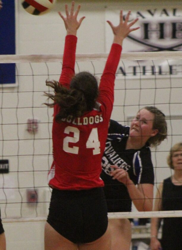 Hollis Brookline's Annette Schlunk, shown playing against Bedford in a regular season match last year, is one of the key returnees for the Cavs, who have been the Division I runnerup to the Bulldogs the last three years. (Telegraph file photo by TOM KING)