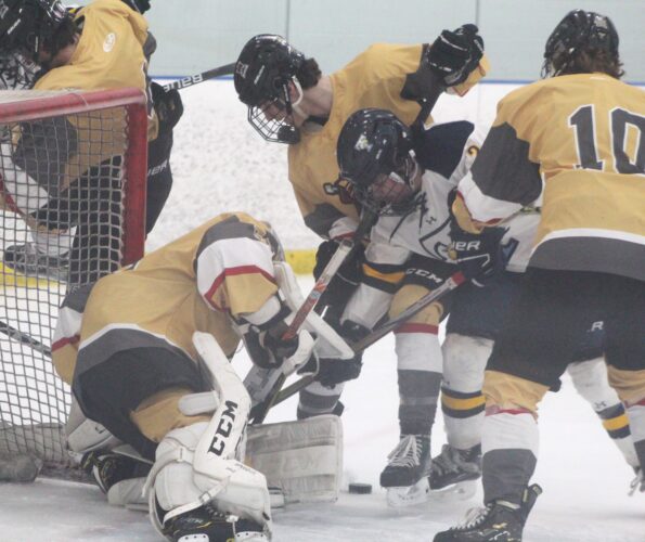 It just added up to a forgetful, penalty filled evening at Conway Arena as both teams combined for a whopping 18 trips to the box. It was bad for N-S right from the start, as Manchester – a co-op of Central, West and Memorial – scored 13 seconds in, led 2-0, and even after North-Souhegan tied it in the second period, got the go-ahead goal just over a minute later.