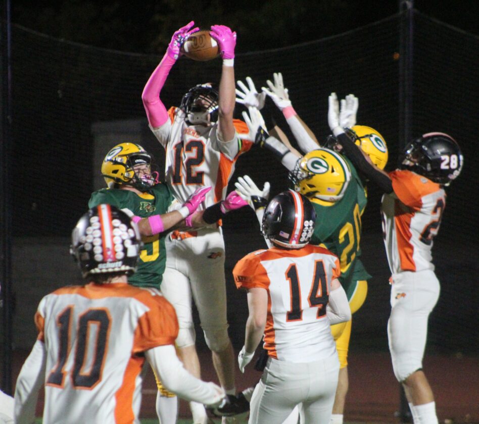 “I think the great thing about our team is that it’s not just one guy,” Sabers coach Robin Bowkett said. “One game it might be Rylan Raudelunas, one game might be Mike Fiengo, Brody Smith, and then this game (Friday’s win over Milford), I think Braden Hickman had three touchdowns. And sometimes it’s just the way it goes.