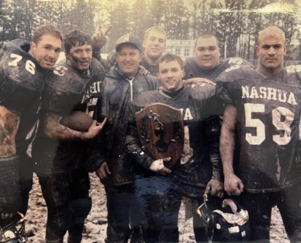 Chad Zibolis, back row, right, was a top lineman at Nashua High School and helped the Panthers win a title under head coach Bill Hardy in the mud in November of 1997 at Holman Stadium. (Courtesy photo)